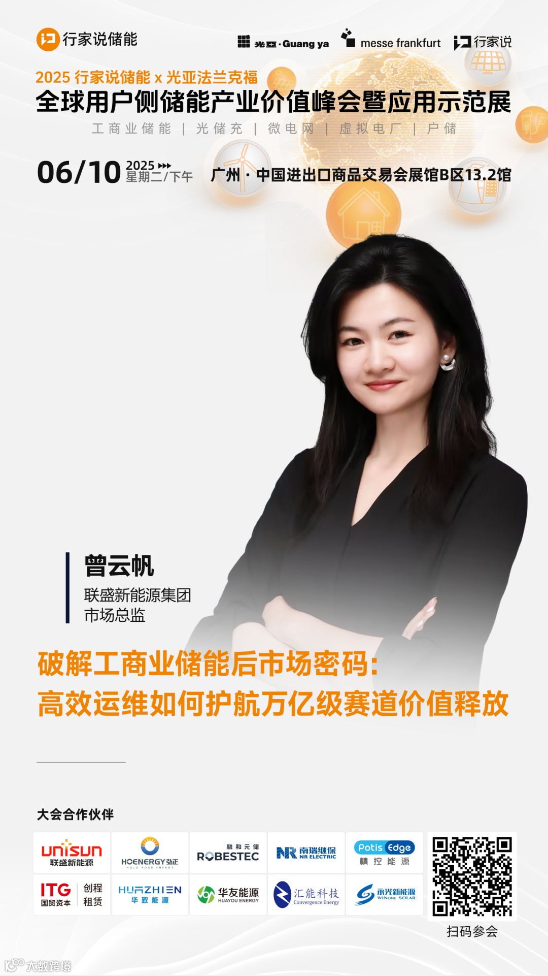 插播:531后,工商业储能何去何从?6月9日-12日,行家说储能联合光亚法兰克福举办“2025年全球用户侧储能产业价值峰会暨应用示范展”,联合业内头部企业共探工商储发展之道,点击“阅读原文”了解详情