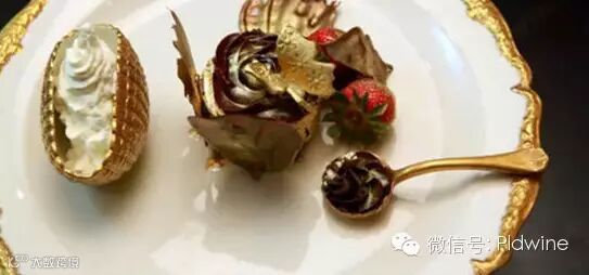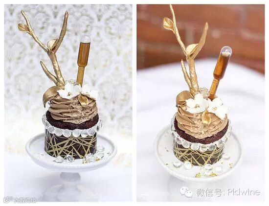 尽管该蛋糕体积很小,但制作精美,汇集了多种高端奢侈的制作原料。蛋糕的糖衣中就加入了单瓶售价为500英镑(约合人民币5,200元)的库克香槟(Krug)。这只蛋糕的底座是手工制作的巧克力杯,用可以食用的珍珠装饰,还撒上了24k金粉。蛋糕顶部装饰着一支金黄色的带叶小树枝和中心缀有金色珠子的糖花,上面撒着珠状鱼子酱。除此之外,还有一支滴管,里面装有Courvoisier限量版白兰地酒。