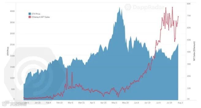 因此,我们可以得出结论,NFT 热潮是真实的。更有经验的区块链业内人士(例如 DeFi 用户)很可能会挖掘出 NFT 及其多种应用程序的全部潜力。此外,根据 Dune Analytics 数据显示,以太坊区块链上的 DeFi 用户量已经超过 300 万,如果按照“用户重叠率”估算一下,目前以太坊区块链上的 NFT 用户量大约为 250 万,随着每天都有更多 NFT 收藏品系列问世,以及 NFT 市场出现不少创纪录的投资交易——毫无疑问,该领域在中期很可能出现较大的上涨空间。