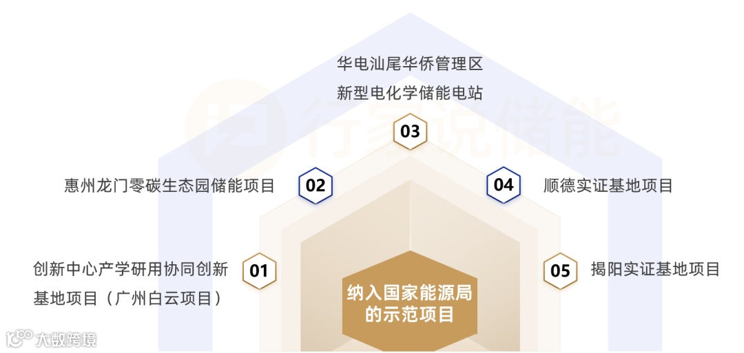 据南网科技介绍,其牵头组建了国家新型储能创新中心,该创新中心实证项目共有10至12 个,其中5个项目已纳入国家能源局的示范项目(见下图)。目前,顺德实证项目已完成招标,南网科技中标,中标金额近3亿元。据了解,广州白云项目、汕尾项目将很快进入招标采购阶段,此外,惠州、揭阳项目也正在积极推进中。