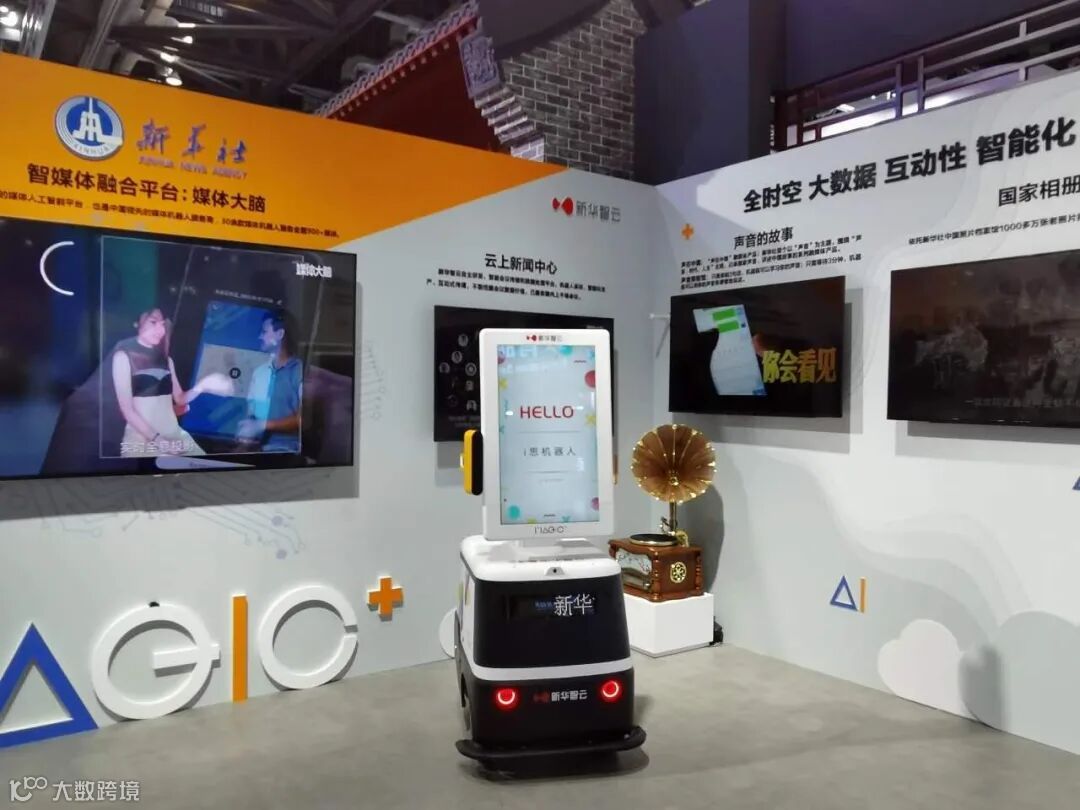 在服贸会展区,由新华社和阿里巴巴共同投资成立的新华智云科技有限公司展出了媒体人工智能平台“媒体大脑”,其中汇集了30多款媒体机器人。