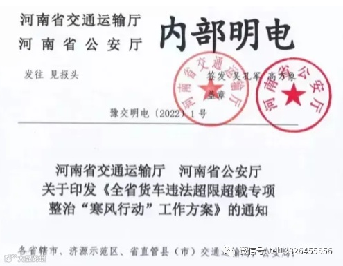 近日,河南省交通运输厅、河南省公安厅印发《全省货车违法超载超限专项整治“寒风行动”工作方案》。要求至2022年3月31日,在全省范围内重点整治货车违法行为。