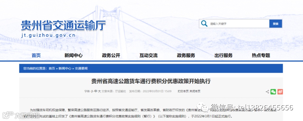 为加强货车司机权益保障,贵州省交通运输厅印发了《贵州省高速公路货车通行费积分优惠政策实施细则(暂行)》(以下简称实施细则),于2022年3月1日起正式施行。