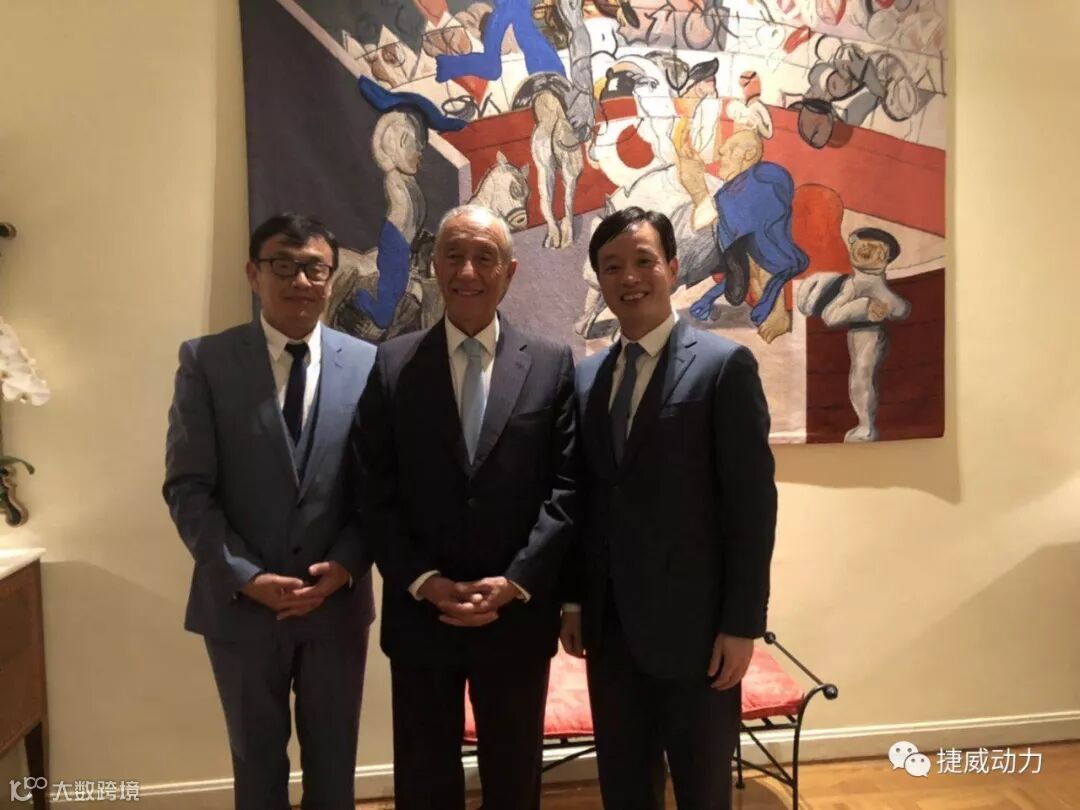 4月27日晚间,葡萄牙总统马塞洛·雷贝洛·德索萨在葡萄牙驻华大使杜傲杰的住所与中国企业投资者代表共进晚餐,捷威动力董事长郭春泰博士应邀参加。席间,郭春泰博士与德索萨总统进行了愉快的交流,真诚表达了愿与葡方企业加强对接交流,寻找合作机会,携手共谋发展。