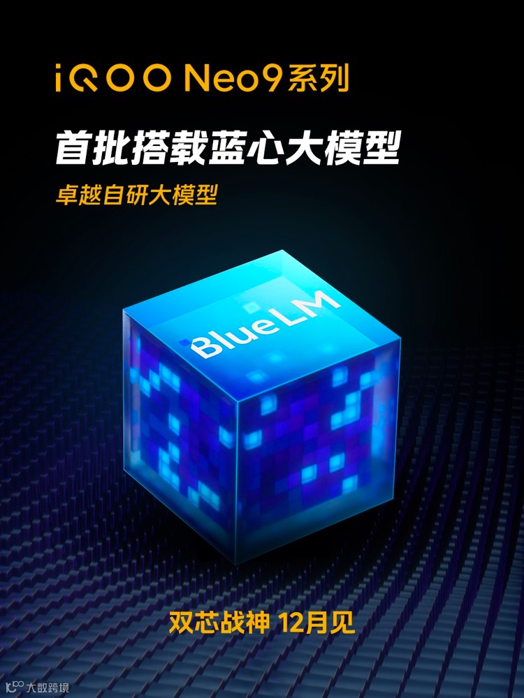 12月14日,iQOO Neo9系列手机将于本月亮相。据官方介绍,该系列手机将首批搭载自研AI蓝心大模型,号称“用超越Pro级的全能生态,带来更智慧、流畅、安全的强大体验,全面开启酷客的AI时代”。(IT之家)