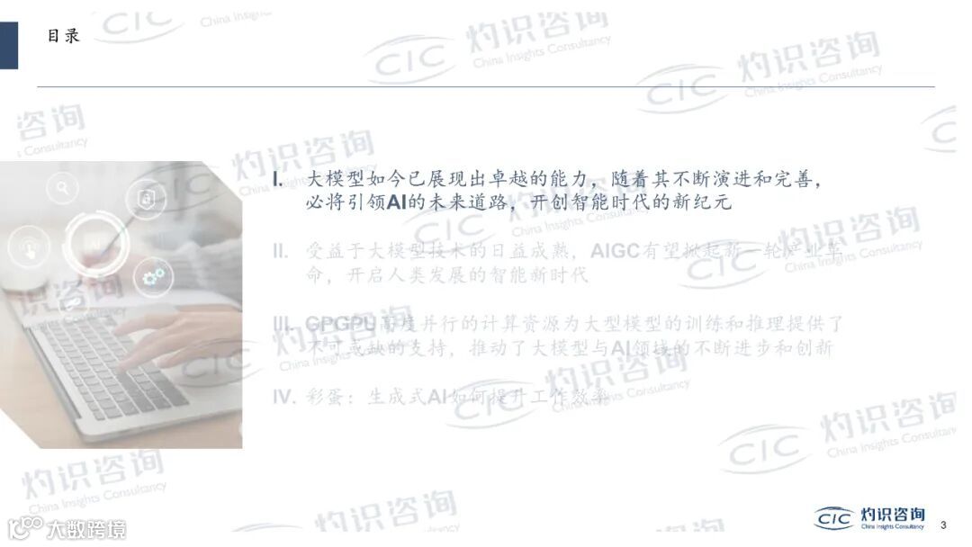 2022年11月30日,由OpenAI发布的ChatGPT横空出世,并引领了过去一年的行业发展。在ChatGPT发布一周年之际,CIC灼识咨询基于大量一手及二手研究,重磅发布《大模型与AIGC蓝皮书》。