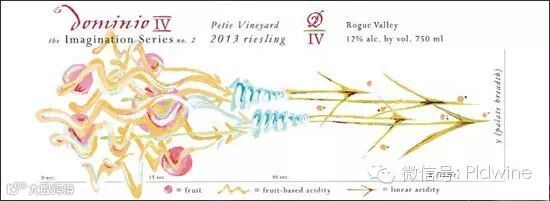 另外,品酒图像沿水平方向舒展,水平方向的延伸范围表示随着时间的延长,葡萄酒口感所产生的变化。“用词语无法准确描述葡萄酒随着时间延长所产生的变化,”帕特里克先生指出,“你可以从时间上进行描述,但无法从空间上进行描述。”