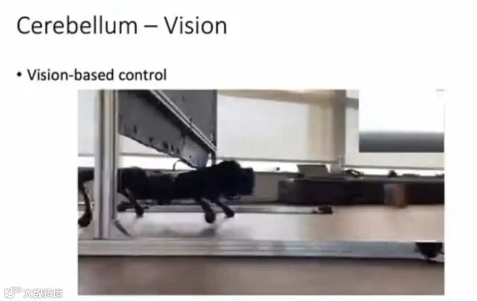 小脑方面,除了走路以外,还有一个重要任务是视觉处理。赵行团队在这方面有一些最新工作:基于视觉的机器人跑酷功能。其研究使得四足机器人能够基于视觉信号识别路障,能够匍匐前进,能够跳过高台,当这些跳跃失败的时候,机器人会不停尝试,直到成功为止。未来我们也会把这类跑酷功能放到人形机器人来实现。