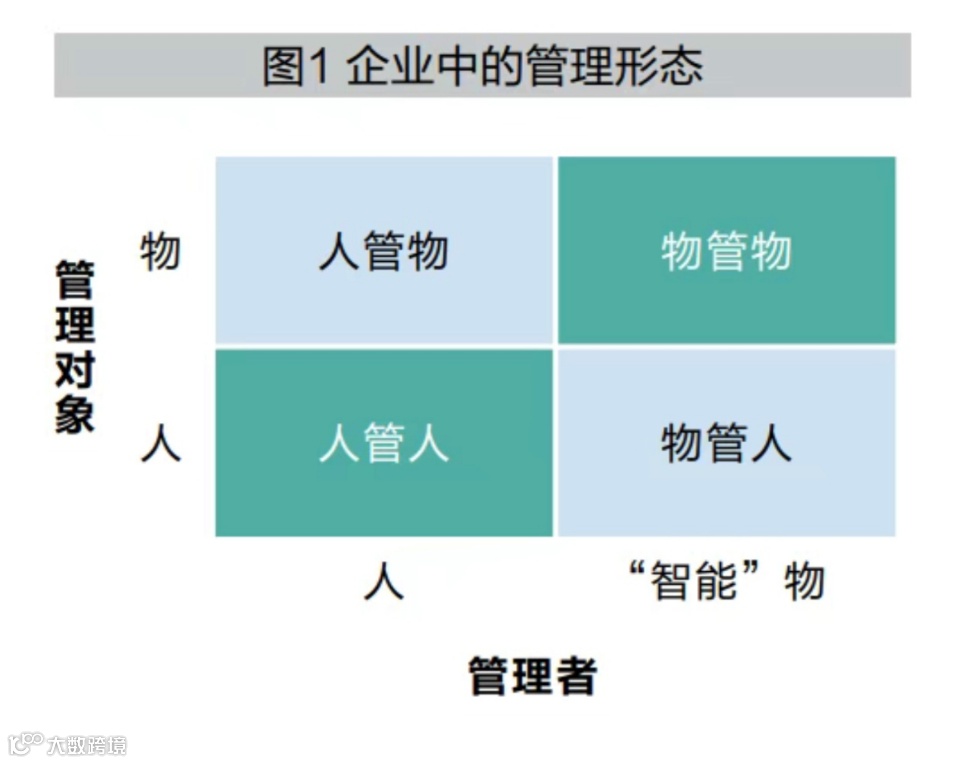 一些谈“对象”在未来数字化的组织中变化的文章指出企业管理的主体(管理者)将扩展至人与物两种基本类型。企业管理的客体(管理对象)仍然是人和物两大基本类型。主体的变化体现在一些具有智能的物不再是被管理的对象,亦可在某种场景中“发号施令”,参与管理工作。当这些对象能够决策时,显然单纯的自身数字化(对象数字化)就不足以解释这些变化。什么样的过程(此处用流程就不见得合适)和规则能够为机器智能背书,应当是需要专门研究与开发的。