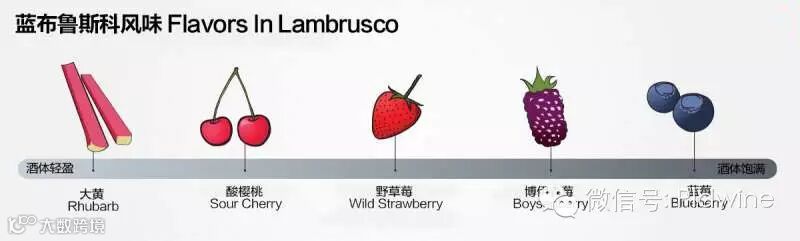 蓝布鲁斯科葡萄酒的风格多样,既可以酿出干型酒也可以酿出甜型酒,既可以酿出颜色淡、充满草莓味的起泡酒,又可以酿出颜色深浓、充满蓝莓味的起泡酒。