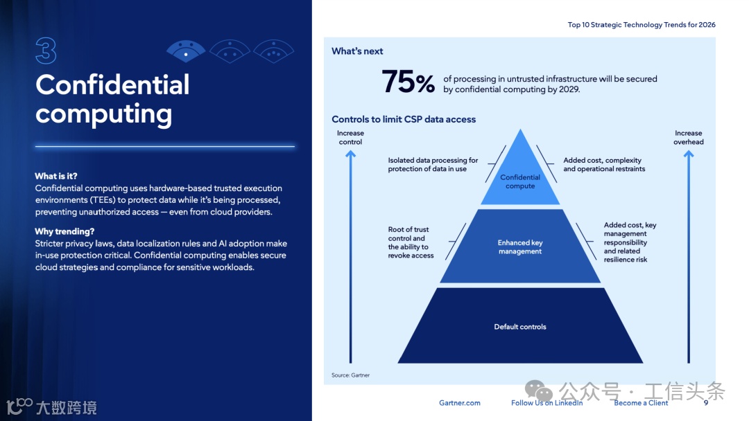 Gartner预测,到2029年,75%以上在非可信基础设施中处理的业务将通过机密计算保障使用安全。