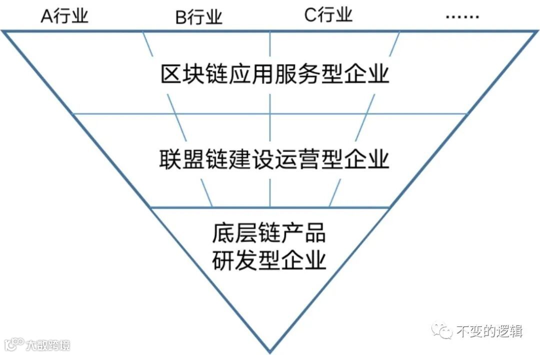 型企业、区块链第三方服务性企业。这种分法虽然没错,但颗粒度较粗,且没有充分体现区块链产业特点,较难为企业发展提供有效指引。