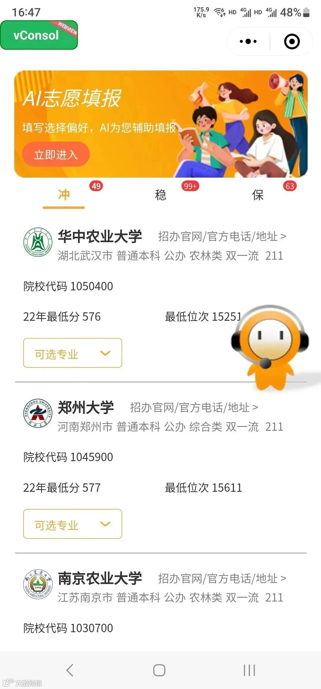 基于自有智能模型研发的AI智能服务,通过问题引导 ,在对话中收集学生兴趣类型、志愿目标、职业规划等信息进行综合分析挖掘,根据考生实际需求与偏好进一步个性化定制高考志愿填报方案,平衡院校、专业、城市等难题选项,为以后的职业生涯打好基础。