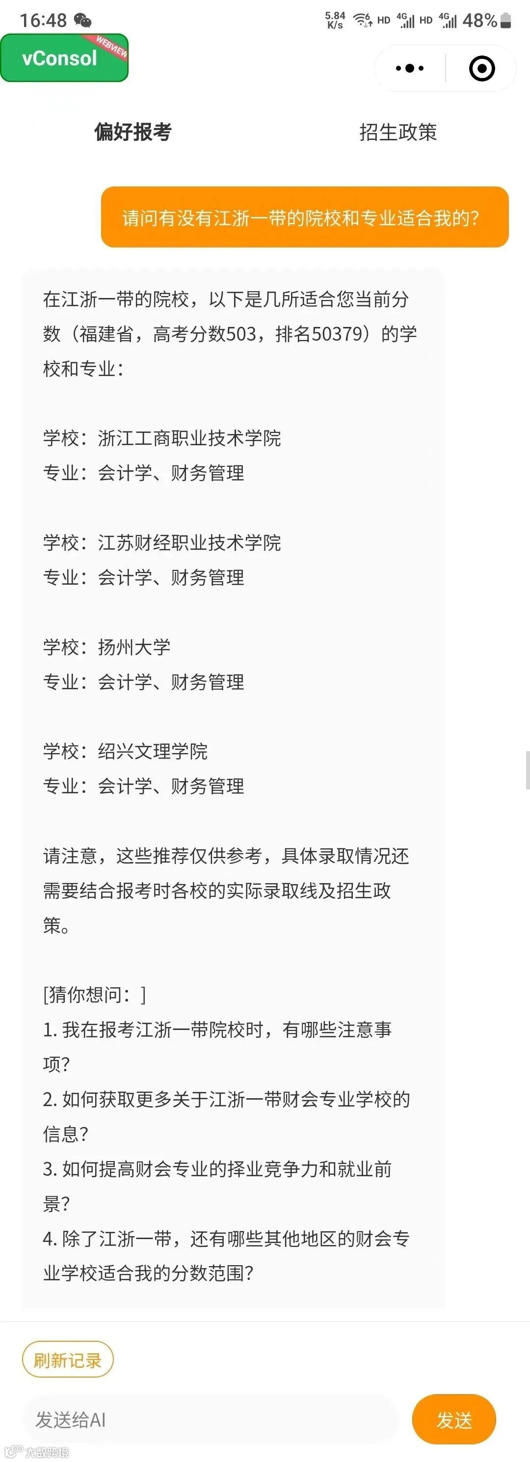 此外,AI智能还可以对问题结果进行进一步智能分析,多维度全面解读各方信息后给出更加精确的推荐结果,为考生的志愿填报提供参考依据。