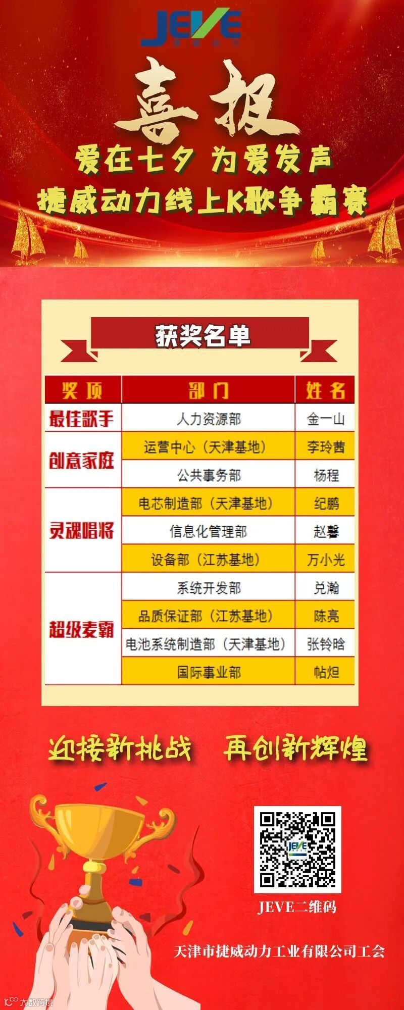 为丰富捷威动力员工业余活动,促进企业文化载体多样化,传承和弘扬中华民族传统优秀文化,企业工会于2020年8月12日正式发起了本次“爱在七夕,为爱发声-捷威动力七夕线上K歌争霸赛”活动,面向全体捷威员工创造一个感恩亲人、感恩朋友、感恩爱人的平台。