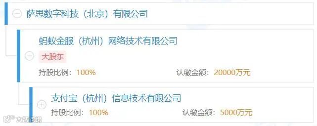 根据公开信息,这家公司名为萨思数字科技(北京)有限公司,由蚂蚁金服(