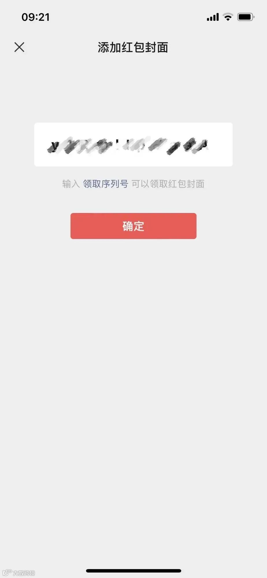 点击【红包封面】-右上角【添加】按钮,粘贴或输入序列号