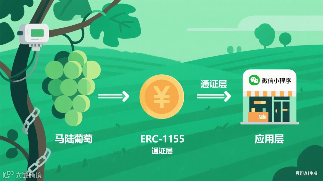 蚂蚁链为马陆葡萄的供应链金融 “代币化”,破解了中小企业融资痛点。技术架构层层递进:数据层靠物联网传感器 + 区块链存证,记录葡萄从种植到流通的每一步;通证层采用 ERC-1155 多代币模型,将所有权与收益权分离;应用层对接微信小程序与线下实体店,让农民和消费者都能便捷参与。