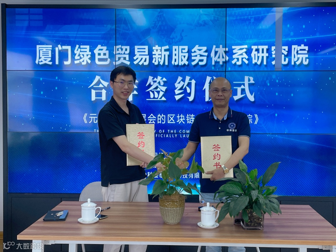 5月31日,为响应国家号召,推动“双碳”目标的快速落地发展,福建中科星泰数据科技有限公司、盈拓国际展览有限公司、弦力场(重庆)数字科技有限公司、西部绿色能源科技(重庆)有限公司达成合作意向,并远程连线举行签约仪式,后续将就《元宇宙展览的区块链+碳足迹跟踪》方向展开探索研究及合作交流。