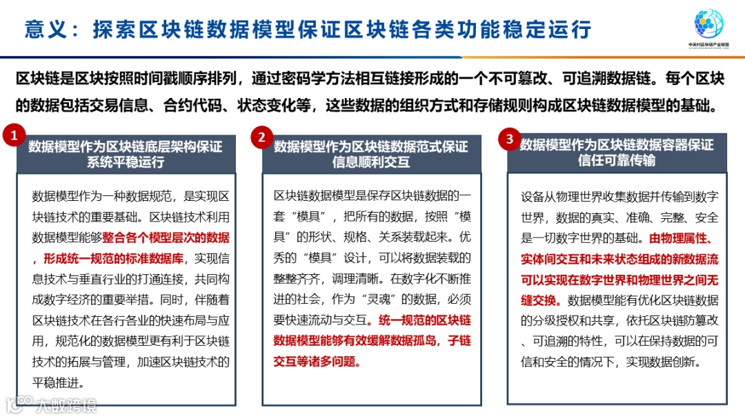 在此背景下,由中关村区块链产业联盟指导,中国信息通信研究院(以下简称“中国信通院”)牵头编写了《区块链数据模型技术与应用研究报告》,并于2023年11月29日在第六届中国信息通信大会数字基建专题报告会上正式发布。研究报告聚焦“区块链数据模型”方向,通过理清“区块链数据模型”概念,分析“区块链数据模型”核心挑战和发展路径,将有助于推动区块链基础设施与数据模型融合化部署,优化区块链基础设施性能,推动区块链基础设施规模化落地。