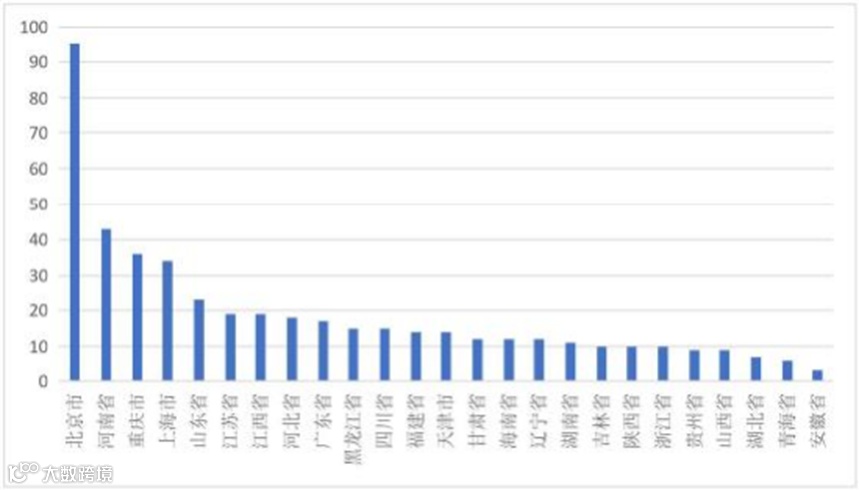截止2022年底各地方政府区块链相关政策数量(不完全统计)
