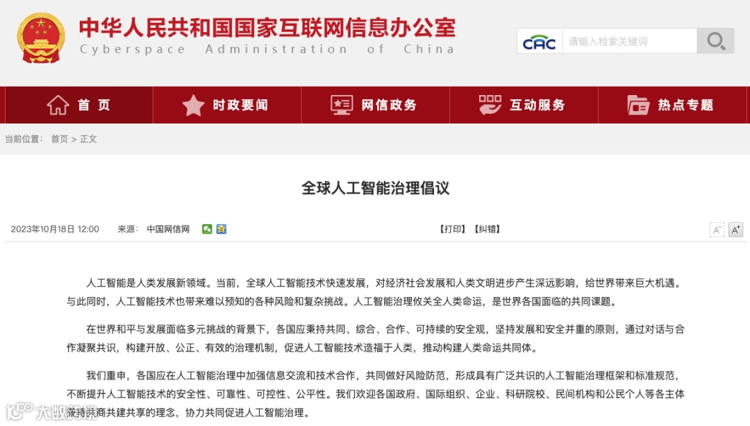 网信办提出全球人工智能治理倡议:反对利用技术垄断和单边强制措施制造发展壁垒