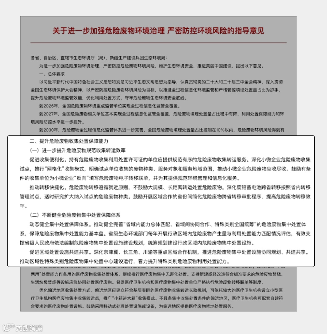 国家生态部最新发布的《关于进一步加强危险废物环境治理 严密防控环境风险的指导意见》(以下简称《意见》),聚焦当前危废管理中的三大痛点:收集网络覆盖不足、跨区域转移效率低下、监管数据碎片化,明确提出要构建覆盖全面、能力匹配的危废收集体系,优化跨区域转移审批流程,并推动监管能力数字化转型,直指危废管理“全链条规范化”与“数字化升级”两大核心。