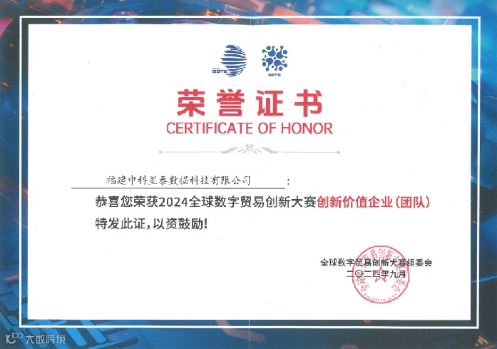 9月28日,2024全球数字贸易创新大赛(以下简称“数贸大赛”)在杭州落下帷幕。经过初赛阶段的层层筛选,福建中科星泰数据科技有限公司与来自全国各地20余家企业同台竞技。经过激烈角逐,福建中科星泰数据科技有限公司的“盈链汇”ERP系统荣获“区块链与数字金融”赛道铜奖,并荣获“创新价值企业(团队)”荣誉。