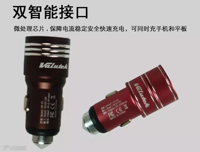 高品质“Valutek值特”车载充电器(2A/1A、安全锤、快冲),特值售价7.5元/套