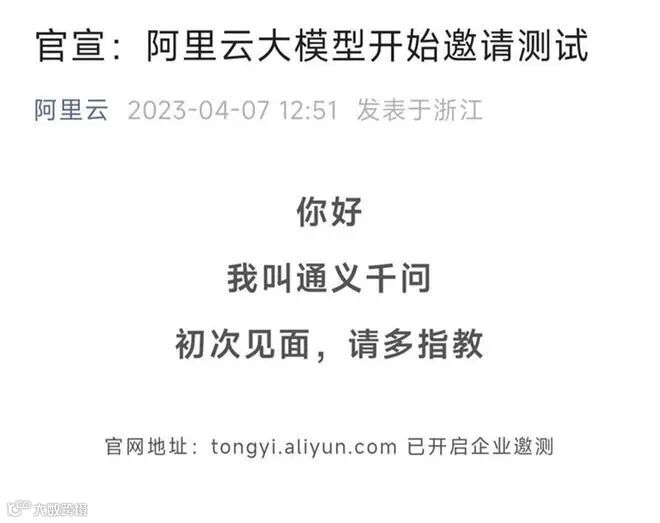 阿里云自研大模型“通义千问”开始邀请用户测试体验