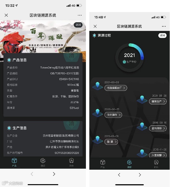 通过记录每一瓶酒的产品生命周期全过程,解决仓储、配送等数据共享难题,有效防范假冒伪劣商品,提升自身品牌价值,为消费者提供真实透明的商品信息查询。