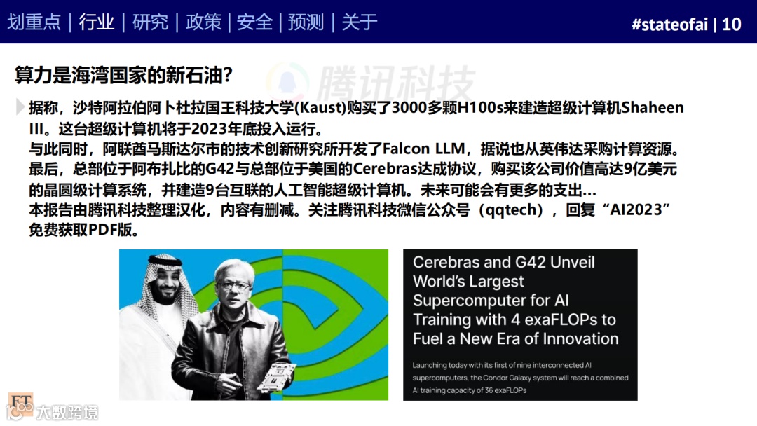 与此同时,阿联酋马斯达尔市的技术创新研究所开发了Falcon LLM,据说也从英伟达采购计算资源。最后,总部位于阿布扎比的G42与总部位于美国的Cerebras达成协议,购买该公司价值高达9亿美元的晶圆级计算系统,并建造9台互联的人工智能超级计算机。未来可能会有更多的支出…