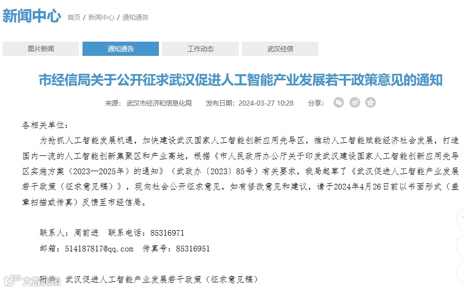 4月8日讯,近日,武汉市经信局起草发布了《武汉促进人工智能产业发展若干政策(征求意见稿)》。意见稿提出,针对制约人工智能的关键核心技术难题与重大需求,单个项目支持额度不超过2000万元。