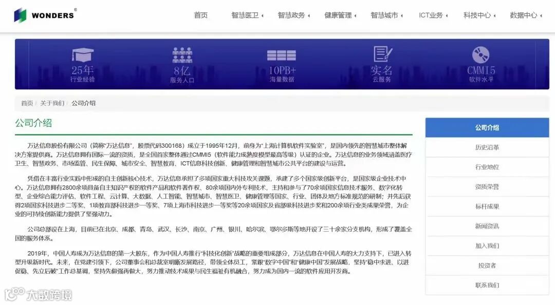 万达信息股份有限公司(简称“万达信息”,股票代码300168)成立于1995年12月,前身为“上海计算机软件实验室”,是国内领先的智慧城市整体解决方案提供商。公司总部设在上海,目前已在北京、成都、青岛、武汉、长沙、南京、广州、银川、哈尔滨、鄂尔多斯等地开设了三十余家分支机构。