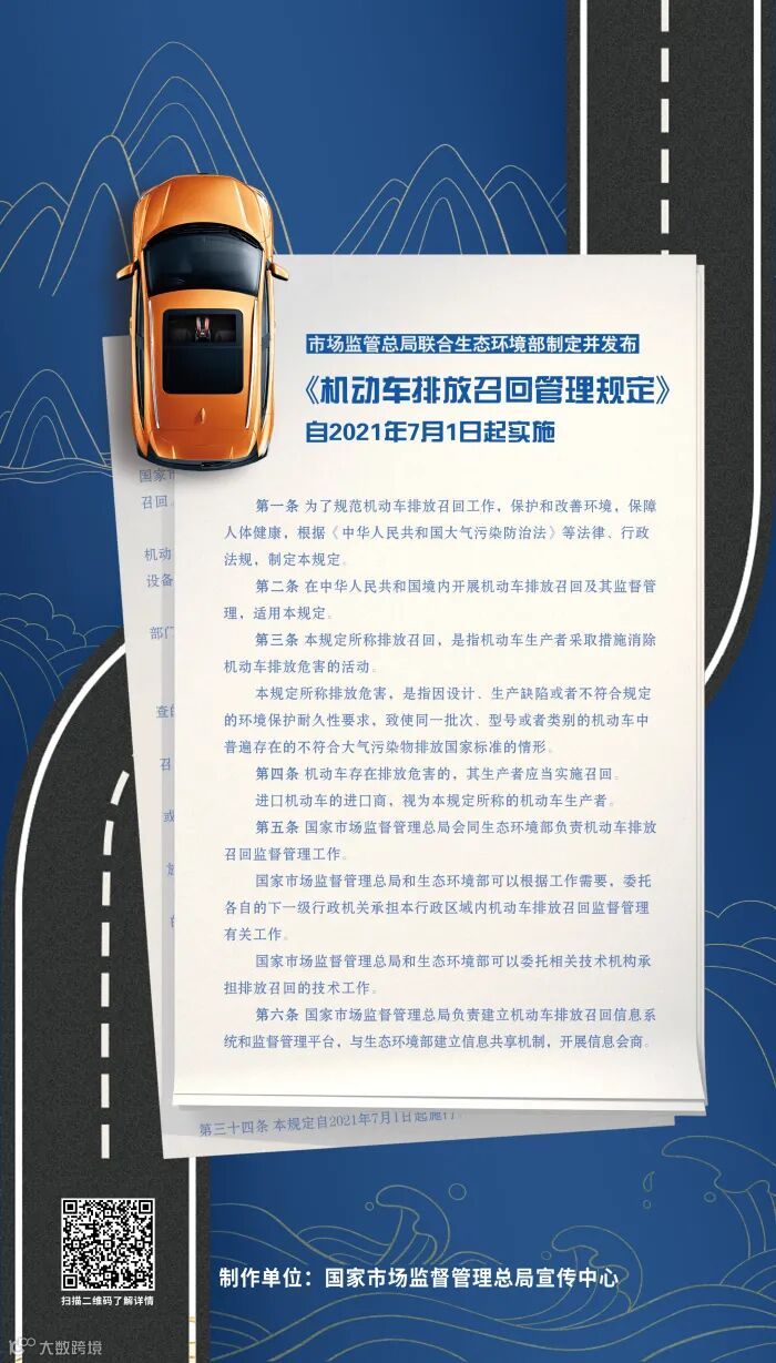 国家市场监督管理总局和生态环境部联合发布的《机动车排放召回管理规定》7月1日起施行。以下这些情况,机动车会因排放被召回。
