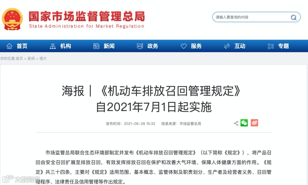 《机动车排放召回管理规定》将于7月1日起正式实施,该规定中第4条明确指出:机动车存在排放危害的,其生产者应当实施召回。