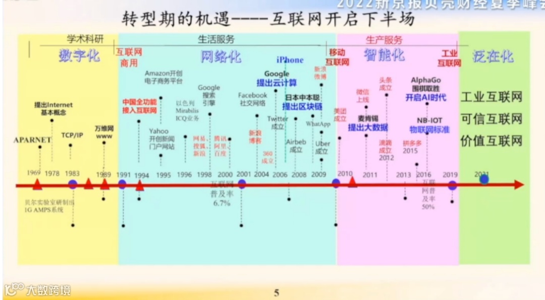 随着移动通信,特别是4G的商用,我们比较深入地进入了移动互联网时代,前后提出了云计算、区块链、大数据、物联网、人工智能。现在随着5G的商用,我们更进一步地推动了工业互联网。