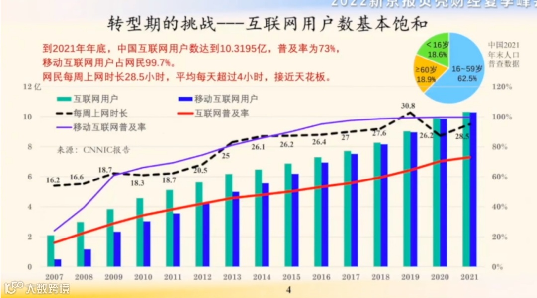 3. 互联网用户数基本饱和,平均每人每天上网4小时