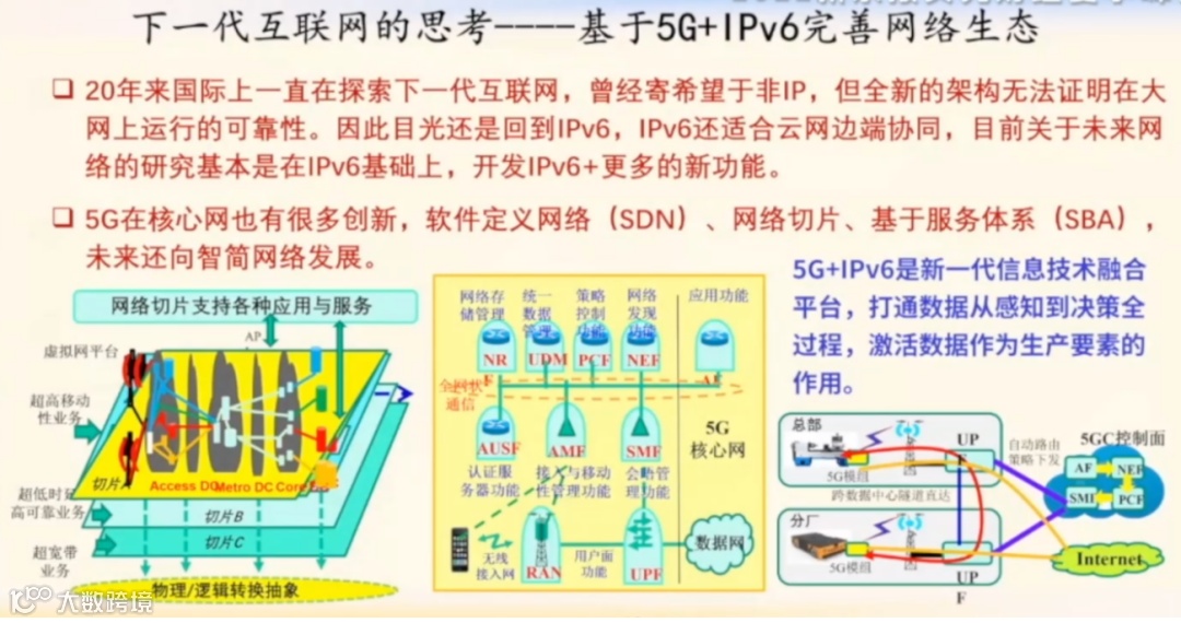 我们说5G加IPv6,不仅仅是5G跟IPv6这两个技术。实际上5G跟IPv6的融合,本身也是所有新一代信息技术的融合,打通了数据从感知到决策的全过程,激活了数据作为生产要素的作用。