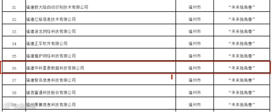 近日,福建省发展和改革委员会网站公示了“2023年度全省数字经济核心产业领域创新企业”名单,福建中科星泰数据科技有限公司凭借其在区块链领域突出的产品研发实力与良好的服务能力荣获“未来独角兽”称号!
