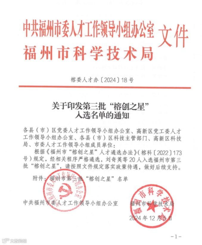 图片来源于榕委人才办〔2024〕18号文件-关于印发第三批“榕创之星”入选名单的通知