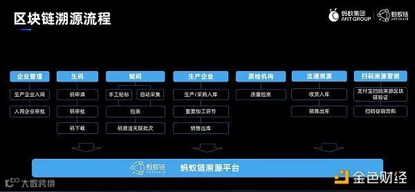 详细看蚂蚁链区块链溯源平台的流程就可以看到其复杂程度。