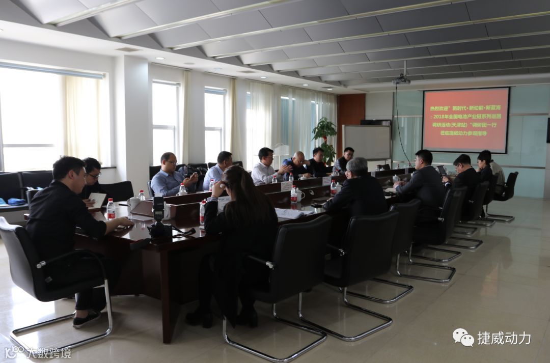 3月29日,“新时代 新动能 新蓝海——2018中国锂电新能源产业链调研行”团队到访天津市捷威动力工业有限公司,捷威动力副总经理陆永华、制造总监王立仕等高层领导接待了来访客人。