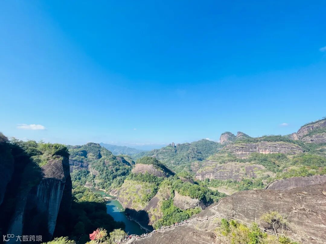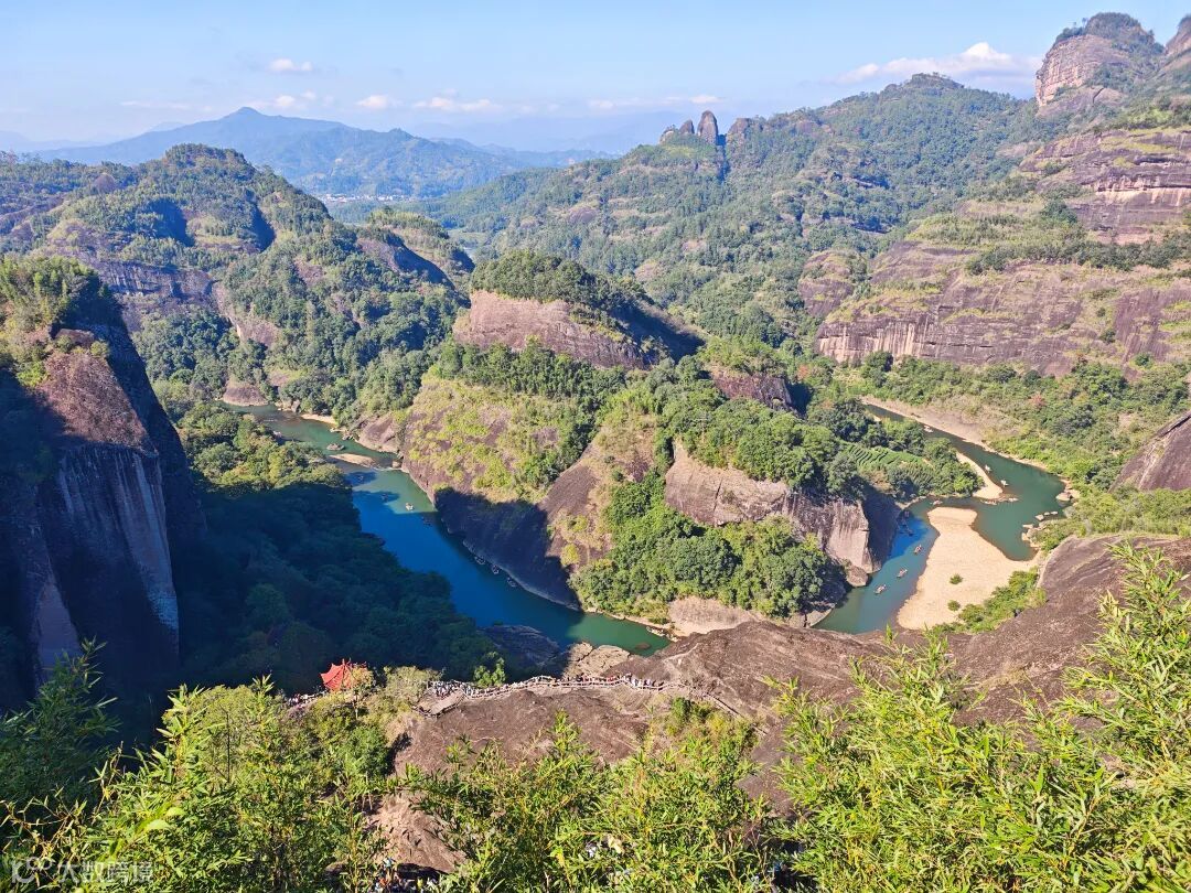 站在山顶,俯瞰九曲溪环绕的壮丽景色,