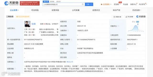 小米智能技术公司1亿元成立科技新公司