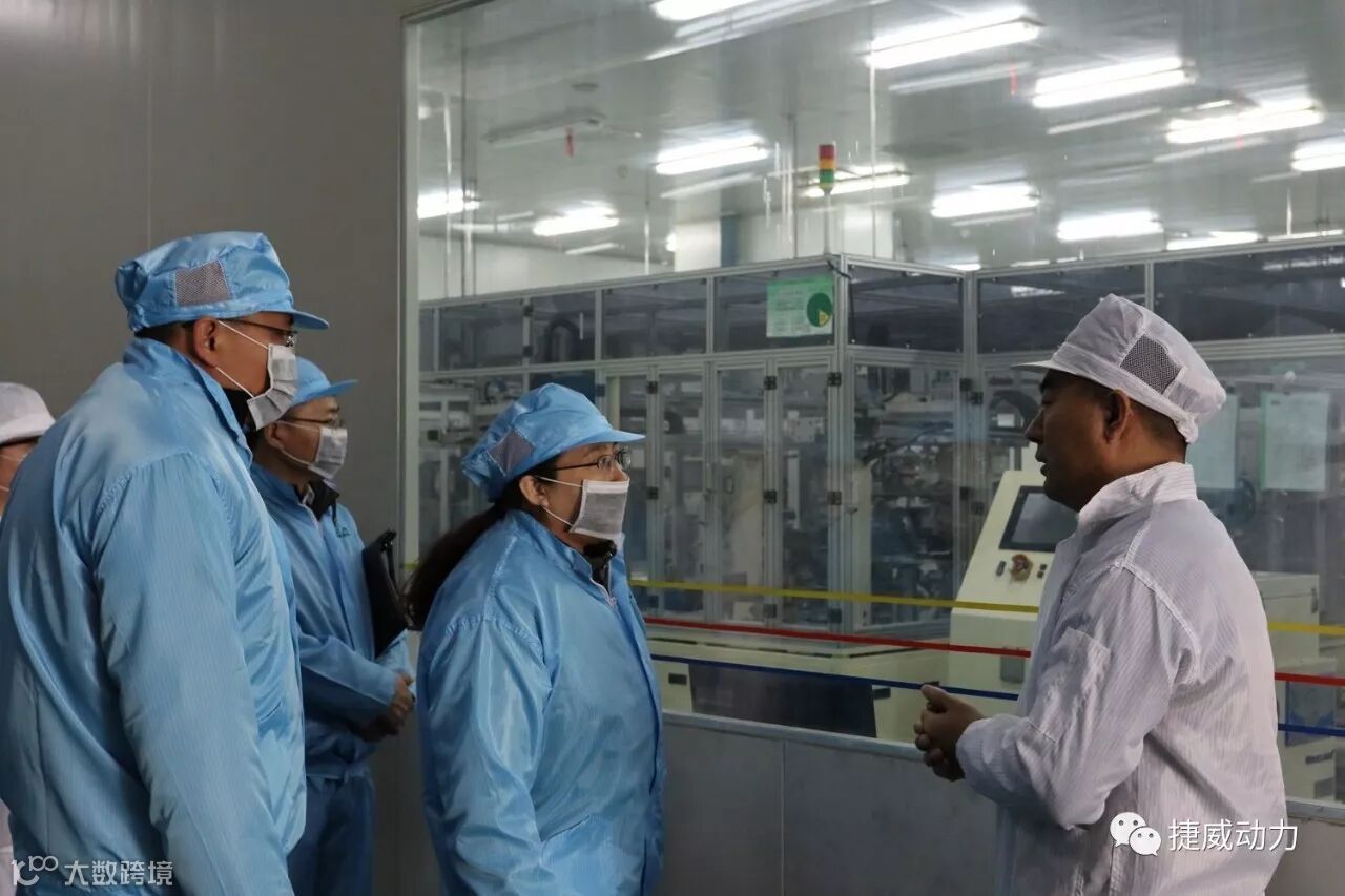 王驰伟首先向到访领导介绍了产品和电动乘用车行业发展状况,之后王立仕和马华带领大家参观了捷威动力电池生产线,市、区领导详细了解的电动汽车电池的生产流程。