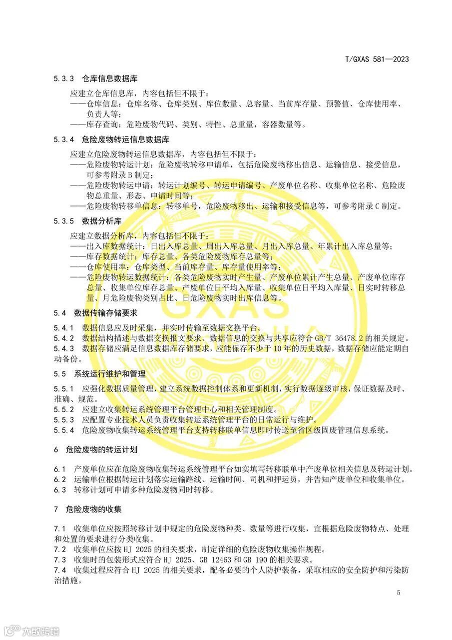 《危险废物全流程监控与信息化管理规范》则涵盖了危险废物从识别、分类、收集、储存、运输到处置的全过程。该标准提出了利用物联网、大数据和人工智能等技术手段,实现对危险废物全流程的实时监控和管理,确保危险废物环境安全。
