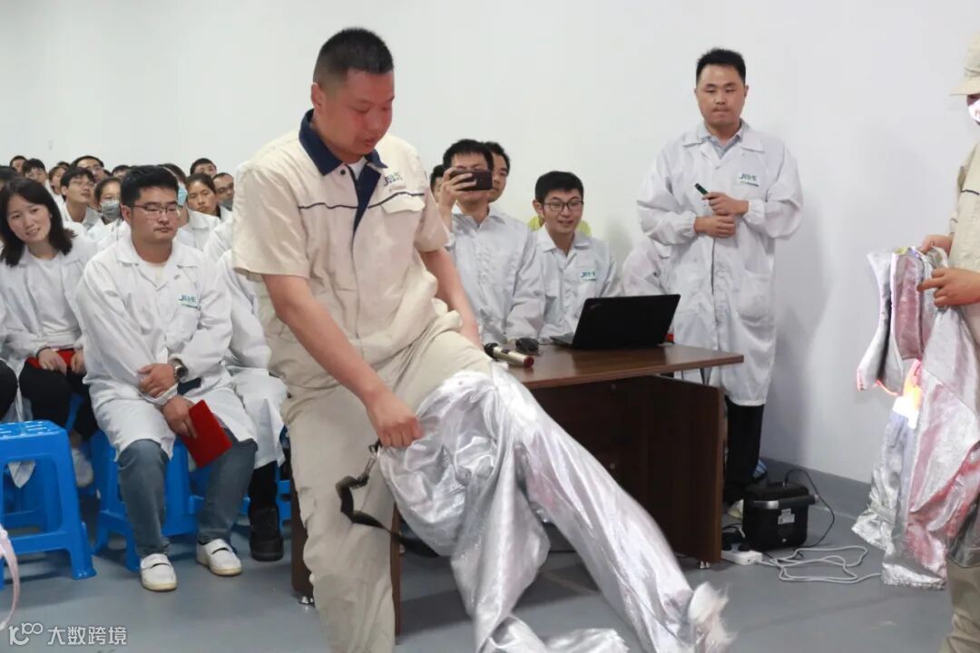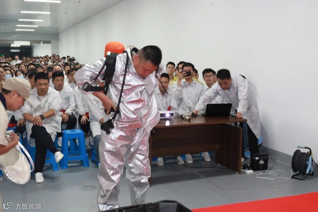 会上,为提高全员的安全意识和参与度,“最佳应急演练表现者奖”的获得者李新应邀现场示范如何正确穿戴专业防护服,并发起现场挑战,会场氛围被推向了高潮。