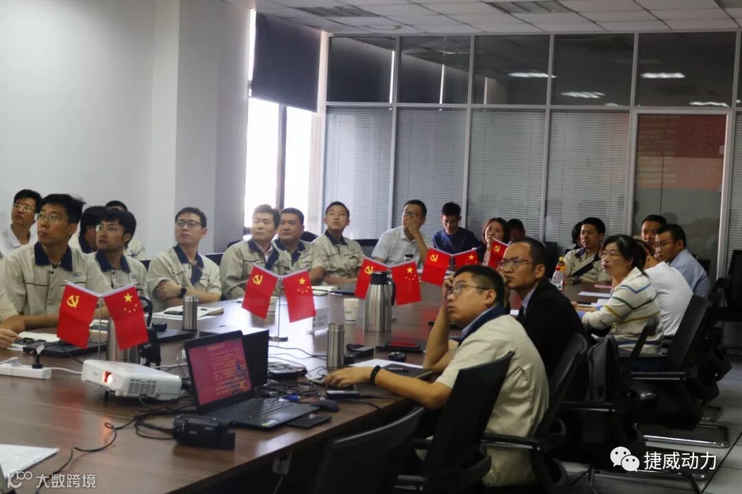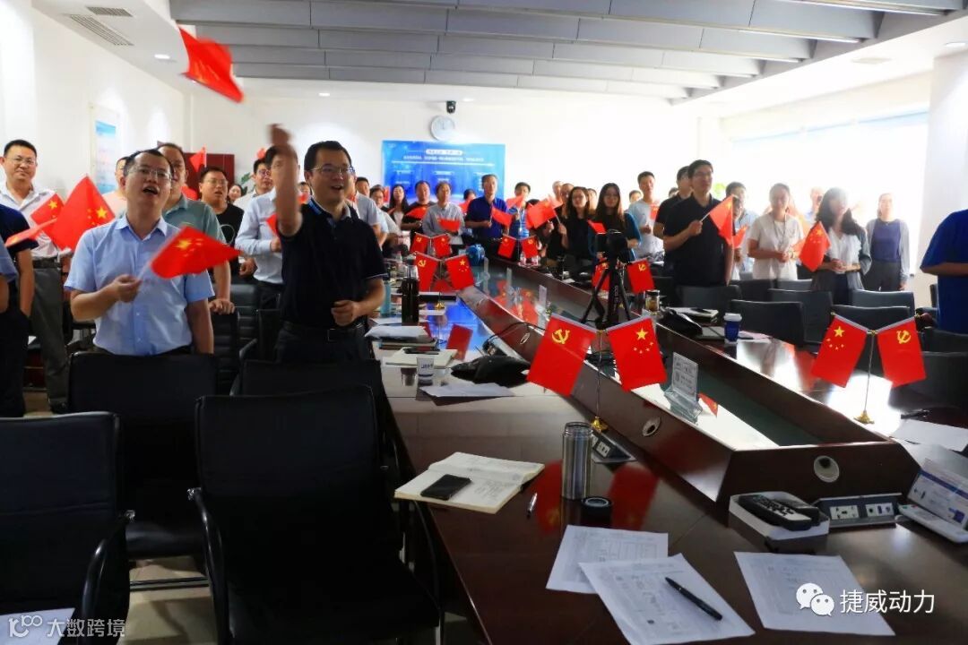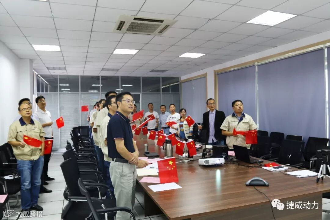 本次研讨会在中华人民共和国成立70周年之际召开,捷威全体员工洋溢着对祖国的热爱之情,利用本次研讨会的机会,捷威动力天津、盐城、嘉兴三方基地共同唱响《我和我的祖国》。鲜艳的国旗伴随音乐的节奏深情飘扬,捷威人爱国的情怀激情洋溢,朗声合唱,祝愿伟大的祖国繁荣昌盛,也祝福捷威动力明天会更好。