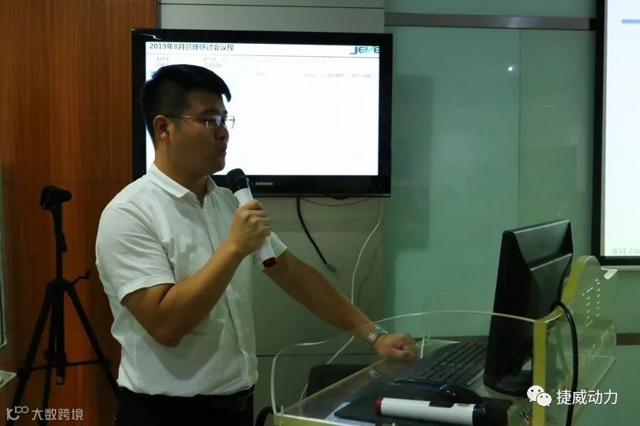 为统一思想,集思广益,切实解决公司发展和管理中所面临的问题,2019年9月28日,捷威动力月度管理研讨会在天津基地302会议室如期举行,盐城基地、嘉兴基地分别以视频方式参加会议,捷威动力总裁王驰伟参加会议并发表“共融共通”的讲话,高管及经理级以上管理者参会,会议由陆永华副总裁主持。